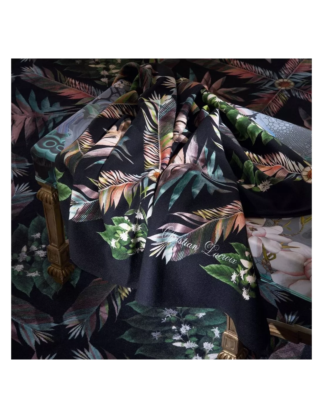 Plaid en laine arborant des formes graphiques de feuilles et de palmiers à effet de plumes, Christian Lacroix