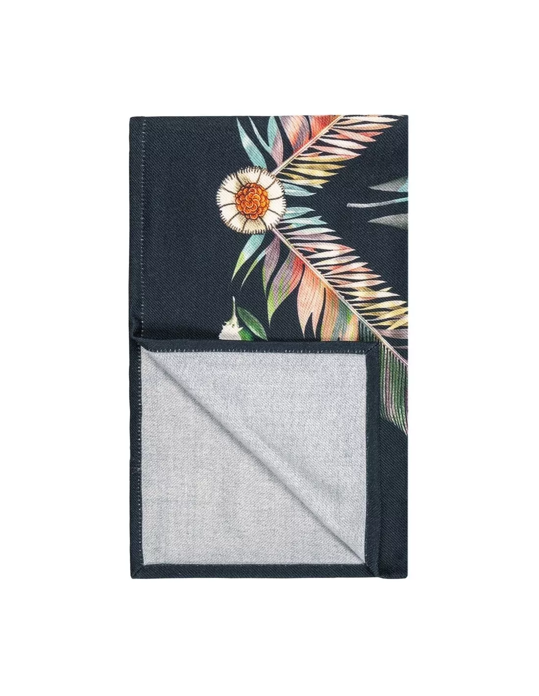 Le plaid Feather Park Jais arbore des formes graphiques de feuilles et de palmiers à effet de plumes, recouvertes de nuances de couleurs et d’ombres douces et délicates. L’intensité du fond noir contraste avec les couleurs et le motif en treillis qui créent un effet presque irisé. Ce plaid d’intérieur design est imprimé numériquement sur de la laine mérinos luxueuse et fini avec un bord ourlé. Retrouvez l’esprit Haute Couture Christian Lacroix, collection prestigieuse, tant en terme de style, que de qualité. Coussin coordonné.