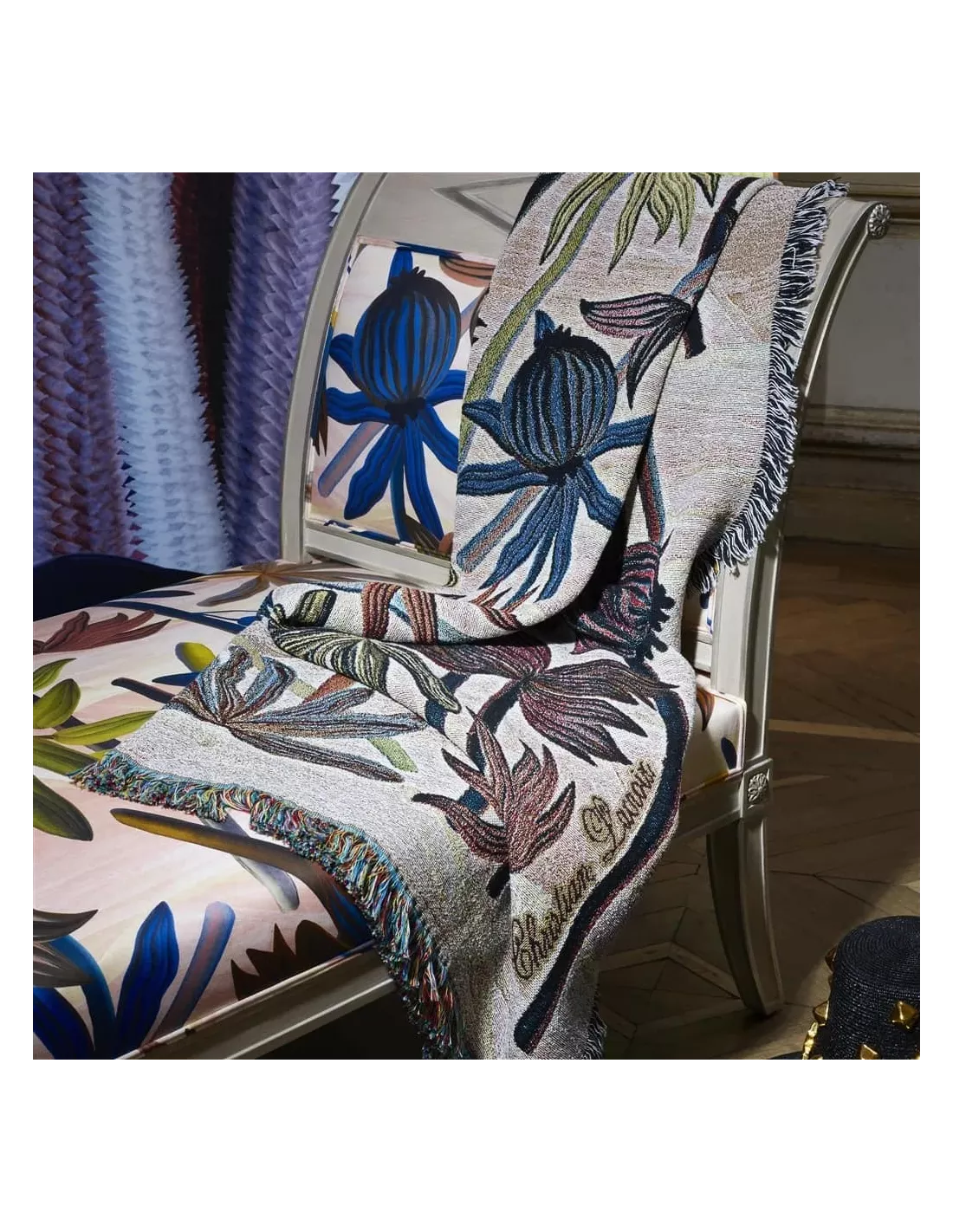 Apportez une ambiance chaleureuse et élégante à votre espace avec le plaid Guatiza Pêche de Christian Lacroix.