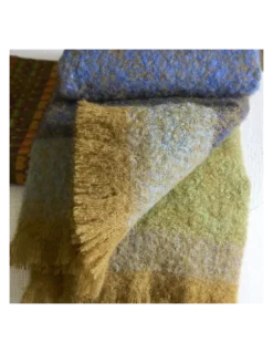 Le plaid Mikome Indigo est un magnifique plaid qui se distingue par son motif rayé à grande échelle. Tissé en mohair, ce plaid offre une texture extrêmement douce et luxueuse au toucher.