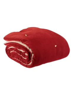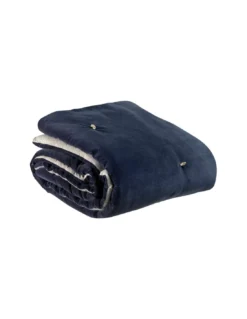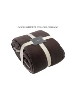 Plaid réversible points noués velours et verso en coton chambray, Vivaraise