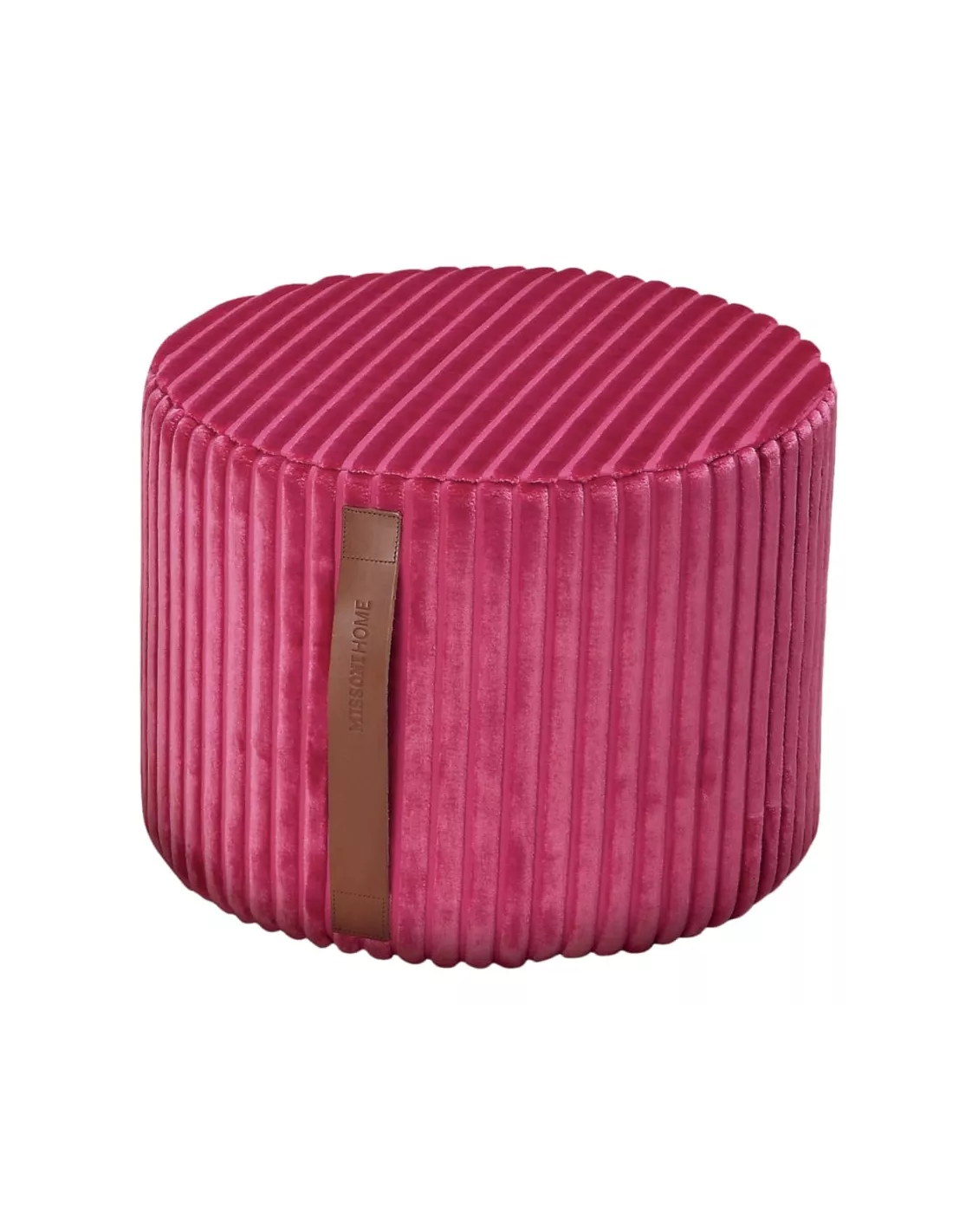 Pouf Coomba rose Missoni Home. Ce pouf Missoni Home est un pouf haut de gamme en velours à grosses rayures ton sur ton en relief. Déhoussable, le pouf cylindre Coomba possède une poignée en cuir siglée Missoni Home sur le côté et un fond en tissu Eucla.