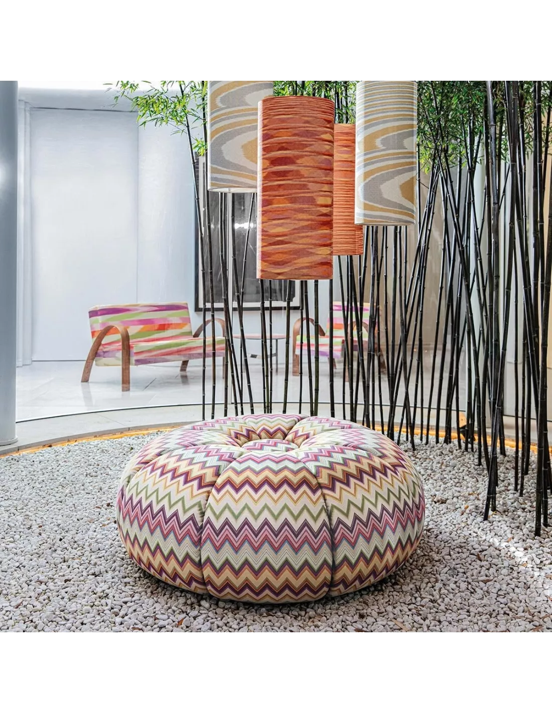 Grand pouf design rond au motifs de zig-zag dans des couleurs pastel, Missoni Home