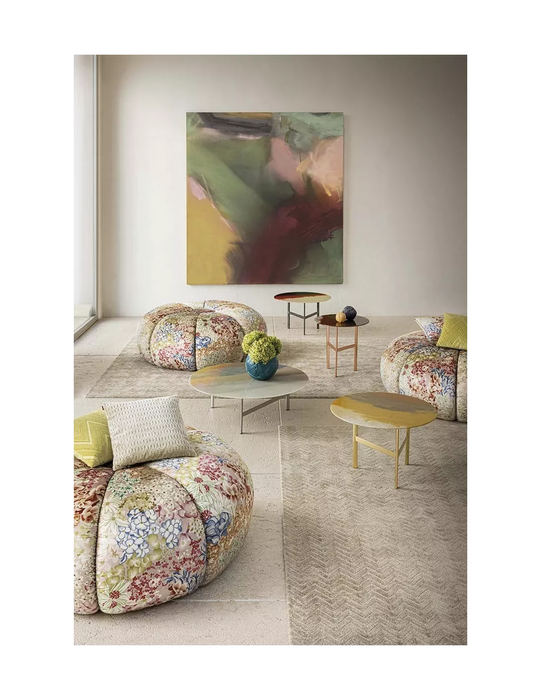 Décor et détente ! Ce pouf imposant est inspiré de la forme du coussin pelote mais avec des proportions géantes. Ce pouf Puntaspillone, 100% made in Italy, est composé d’un support en bois sur lesquelles reposent des cales moelleuses rembourrées de mousse avec un revêtement élégant choisi parmi les nombreux de la gamme proposée par la marque. Nous vous présentons ici Agadir, tissu avec le célèbre et typique motif zig-zag Missoni Home dans des couleurs pastel fraîches et pétillantes. Une utilisation en intérieur est recommandée. Le pouf Puntaspillone trouvera sa place dans le salon où il peut être utilisé comme siège supplémentaire ou dans la chambre à coucher, comme inspiration décorative.
