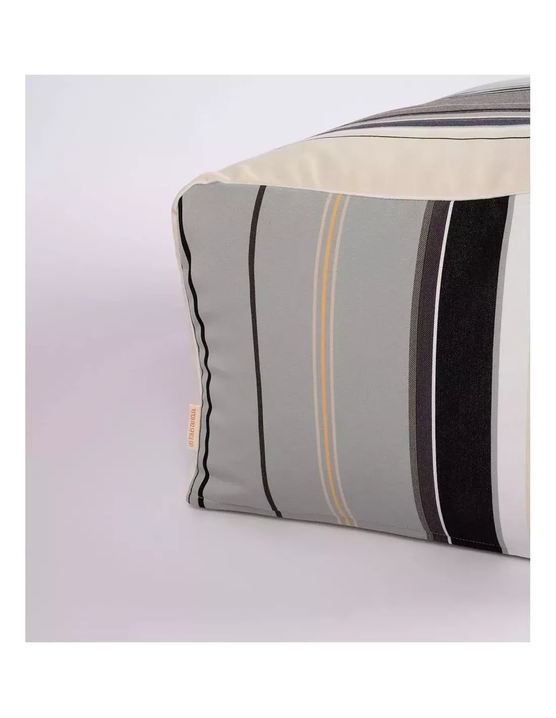 Pouf ou repose pieds gris et noir en tissu outdoor, les Toiles du Soleil