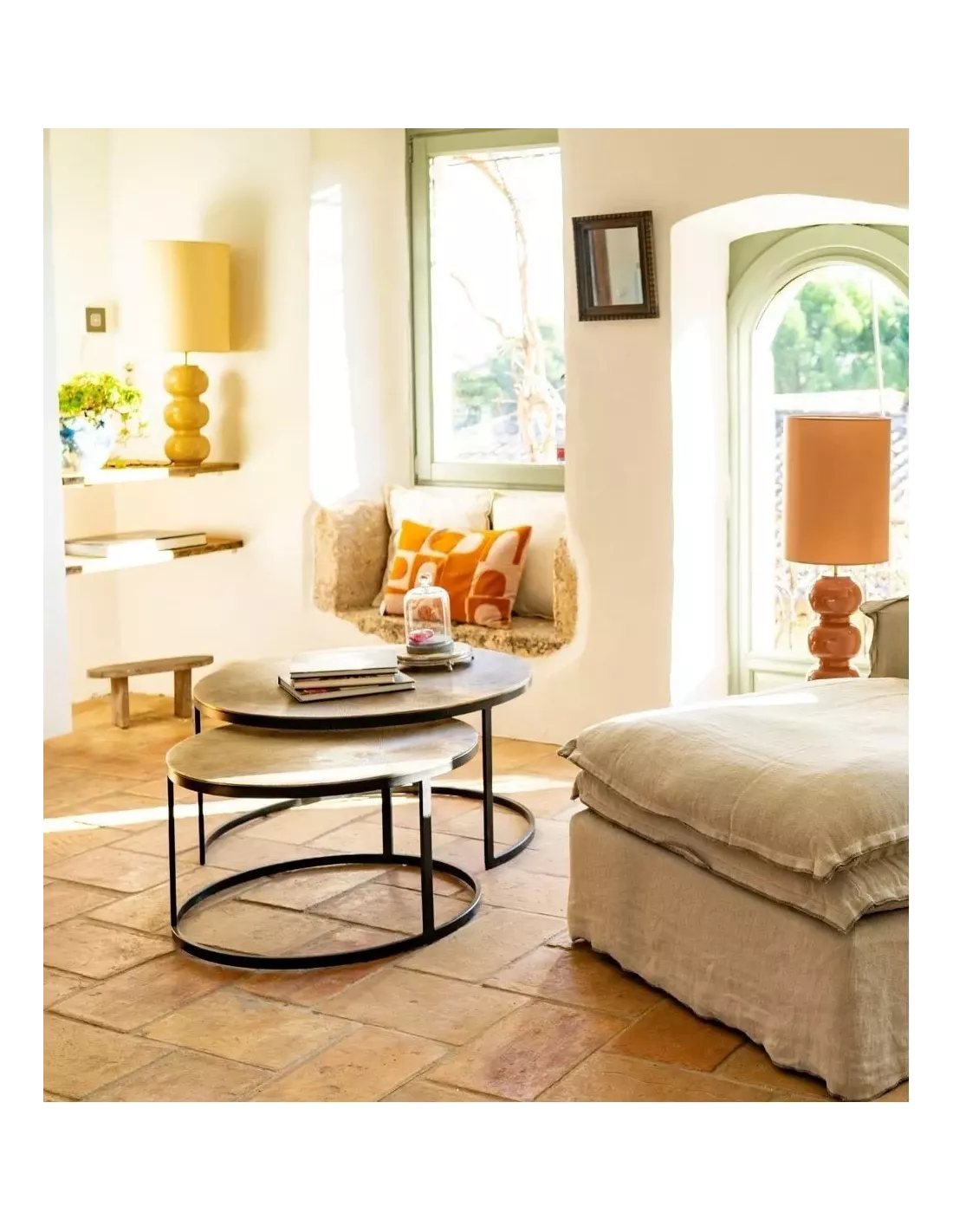 Icône du classique-chic, ce set de tables basses Lucerne sera parfait dans votre intérieur. Ces tables basses trouveront une place dans votre salon ou dans votre bibliothèque. Parfaite pour un intérieur aux inspirations chic et délicate, la table basse Zermat, toute en rondeur, apporte lumière et chic à votre salon. Sa couleur doré patiné est la touche sophistiquée qu’il vous faut !