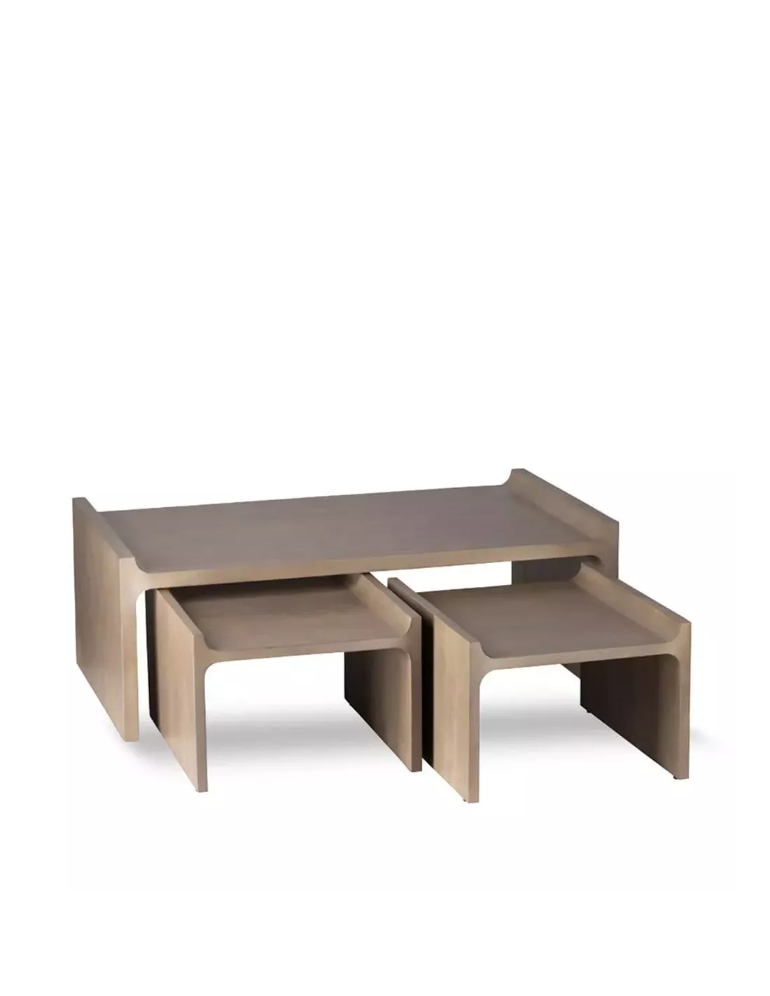 Élégance et raffinement naturel avec ce set de trois tables basses Conill en bois de manguier. Aux tons gris taupe, ces tables apporteront une touche minérale et contemporaine à votre intérieur.