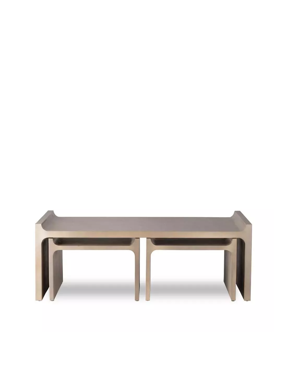 Les deux plus petites tables, de dimensions 50 cm de long, 60 cm de large et 35 cm de haut, peuvent être disposées de part et d’autre de la table principale pour créer un ensemble harmonieux. Elles seront parfaites pour y déposer vos tasses de café ou le livre que vous êtes en train de lire.