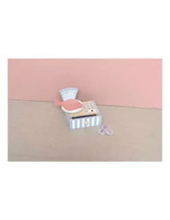 Votre enfant peut désormais ouvrir son propre petit marché, grâce au très populaire stand de marché. Il pourra y vendre aussi bien des fruits frais, que des légumes fraîchement récoltés. Le stand de marché se compose de 2 étagères et de 6 compartiments où le client vient chercher ses marchandises, ainsi que d’un petit comptoir où l’on paie. Votre enfant pourra facilement vendre les aliments et les emballer dans les sacs associés qui sont suspendus des deux côtés.