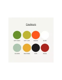 La suspension Mogador est disponible en huit couleurs vibrantes pour répondre à tous les goûts et à tous les styles : blanc, noir, noir mat, vert foncé, vert anis, jaune, rouge, orange et céladon. Que vous souhaitiez une ambiance classique, moderne ou audacieuse, la suspension Mogador a une couleur qui correspond à votre vision.