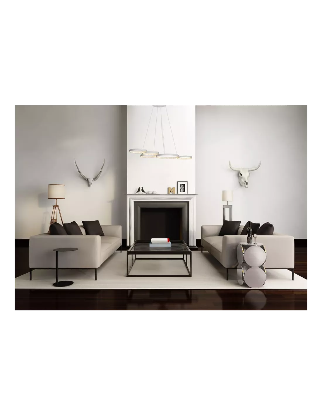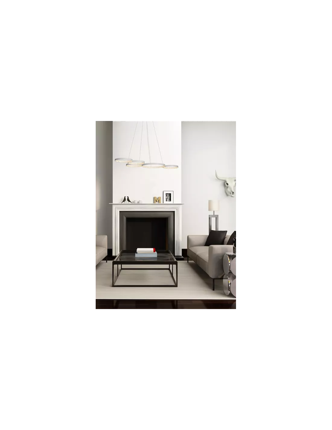 La suspension Super 8 blanche Le Deun Luminaires, est une très belle suspension générant une lumière directe et indirecte, qui donnera un chic particulier à votre pièce. Les cercles de ce lustre sont en acier recouverts de peinture Epoxy blanche, donc très résistante. La suspension Super 8 est composée de 176 LED blancs chauds (2700 K°) incrustés. Sa hauteur est ajustable de 40 cm à 2 mètres. Néanmoins, si cela est spécifié à la commande, une longueur de cables plus importante est possible, SANS FRAIS supplémentaire. Dans ce cas, merci de renseigner la case prévue à cet effet lors de la passation de la commande, (page de saisie de vos coordonnées). Cette suspension est équipée d’un transformateur électronique de 110/220 volts, muni d’une télécommande variateur de puissance 0 à 100 %.