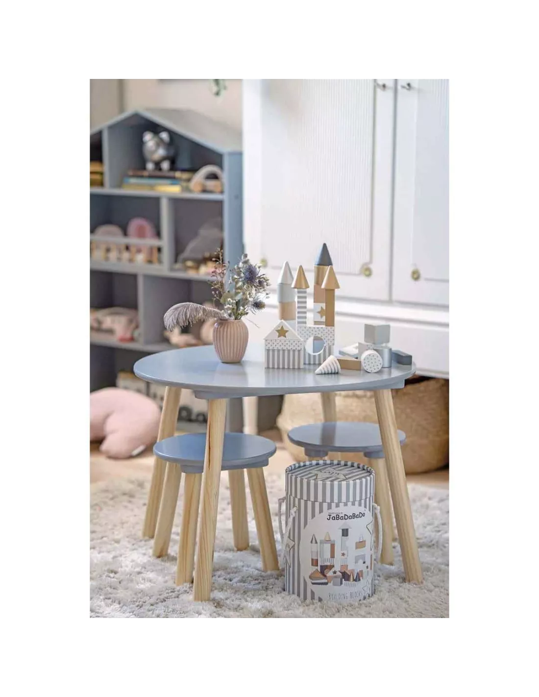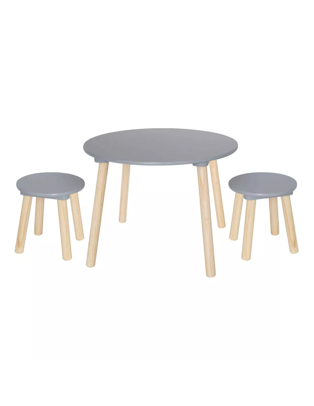Table + 2 tabourets gris pour enfant, JaBaDaBaDo