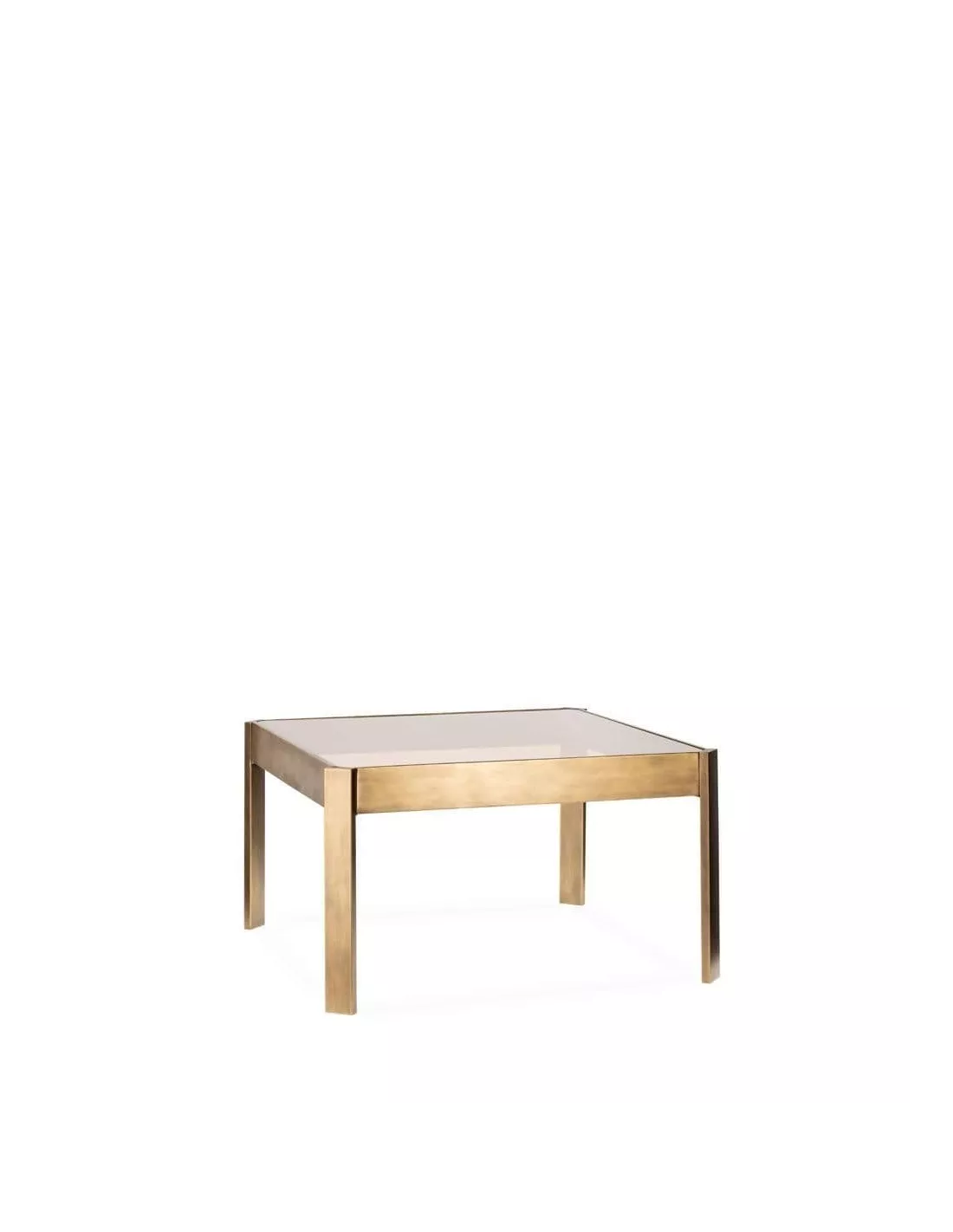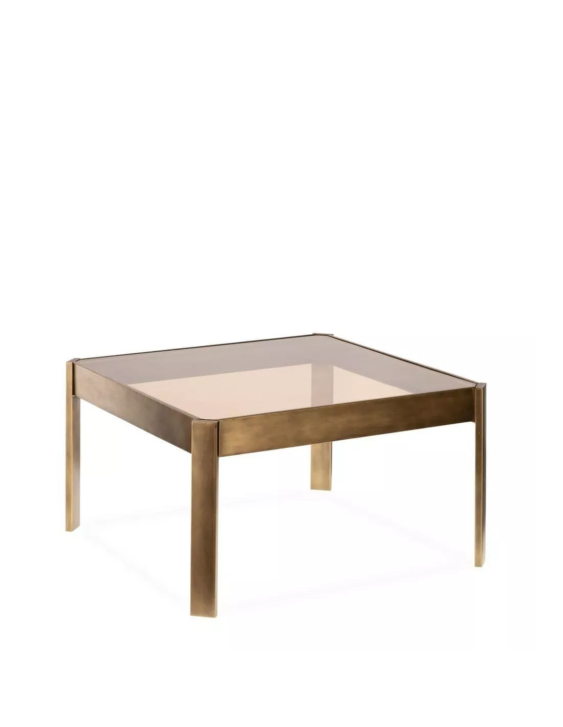 Cette table basse carrée Levanzo en métal bronze et verre fumé est un choix contemporain et élégant pour votre salon. Avec ses dimensions de 81 x 81 x H42 cm, cette table offre une surface généreuse pour exposer vos décorations préférées, poser des magazines ou partager un verre avec vos proches.
