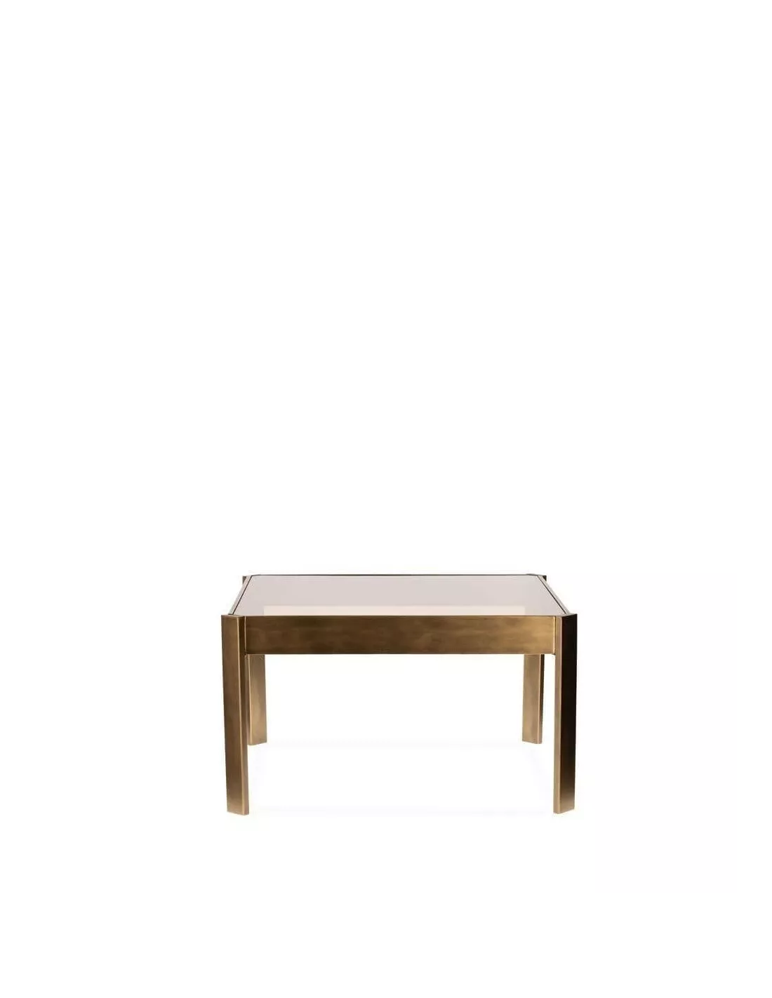 Que ce soit pour servir de point central lors d’une réception ou pour simplement donner du style à votre salon au quotidien, cette table basse carrée en métal bronze et verre fumé est un choix esthétique et fonctionnel. Apportez une touche de sophistication et de modernité à votre intérieur avec cet ajout polyvalent et élégant.