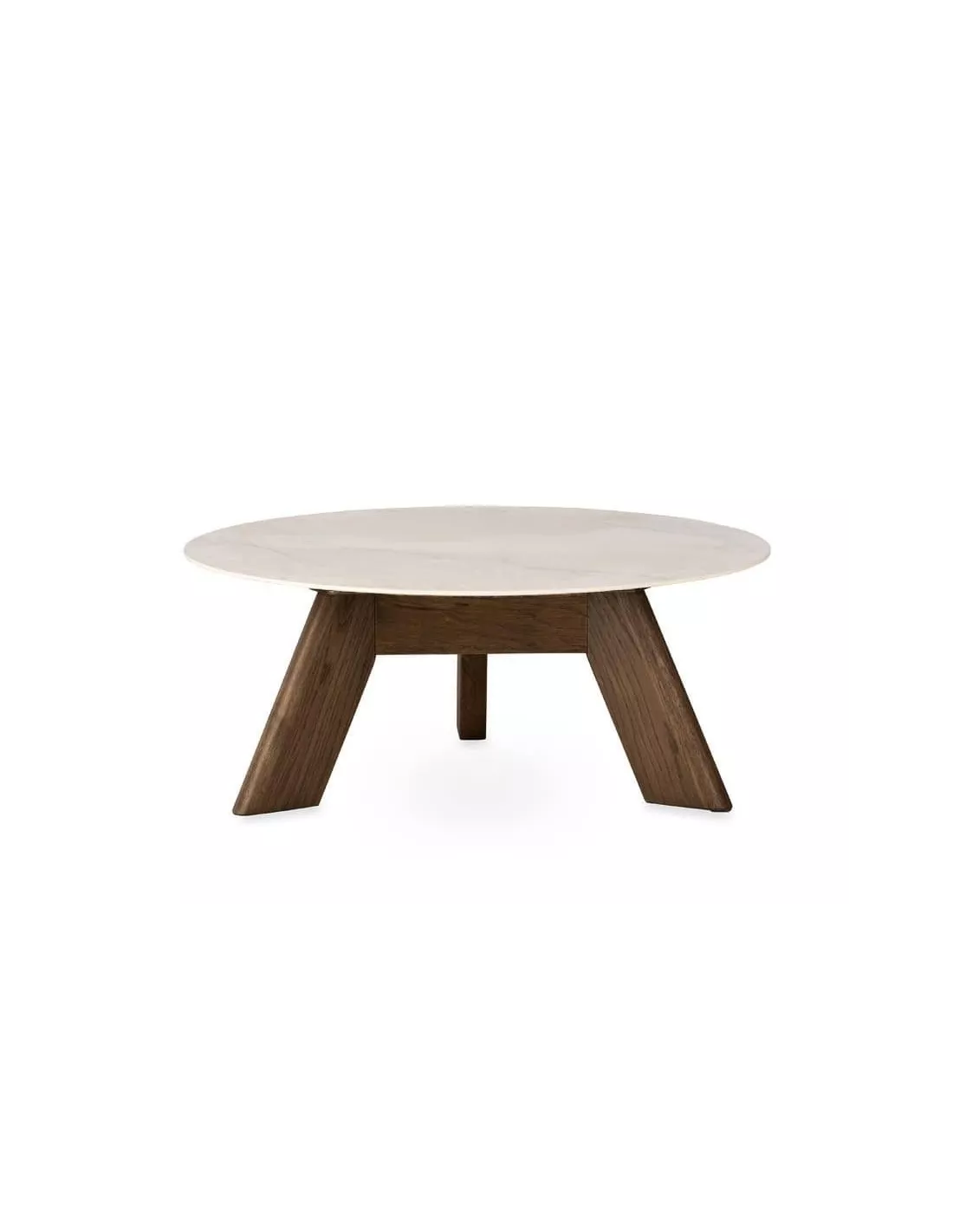 Le plateau en pierre frittée, d’une beauté saisissante, ajoute une touche de sophistication à cette pièce. La pierre frittée est non seulement esthétique, mais également très résistante aux taches et aux éraflures, ce qui en fait un choix pratique pour une table basse.