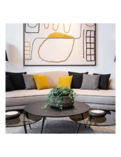 Vous pouvez associer la table basse Venus bois à la table basse Venus Glass.
