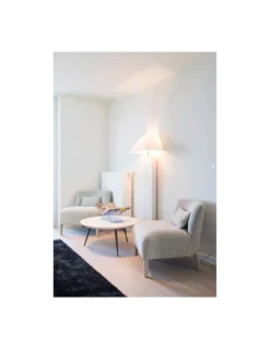Un design pur pour la table basse Venus. Nous aimons son design d’inspiration 50’s ! Les pieds de la table basse ronde Venus sont en acier brut traité et vernis extra mat et son plateau en placage chêne (finition grège en photo).
