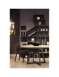 Table de salle à manger design ronde en chêne et piètement anthracite, PH Collection