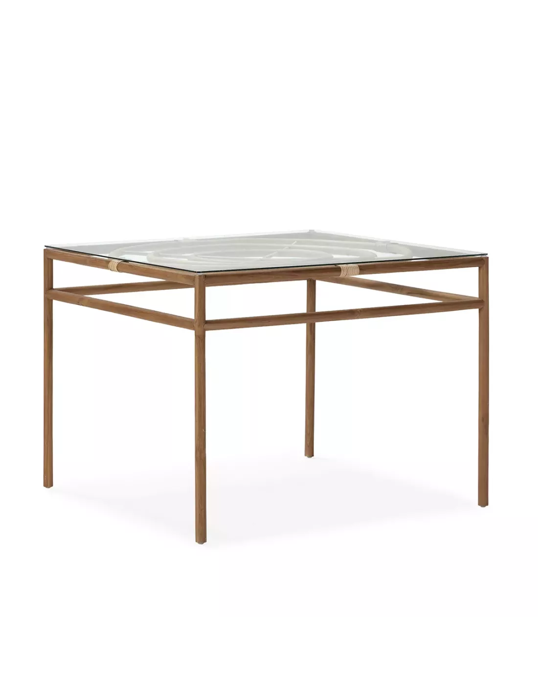 Table de repas carrée outdoor en teck rotin et verre, Thai Natura