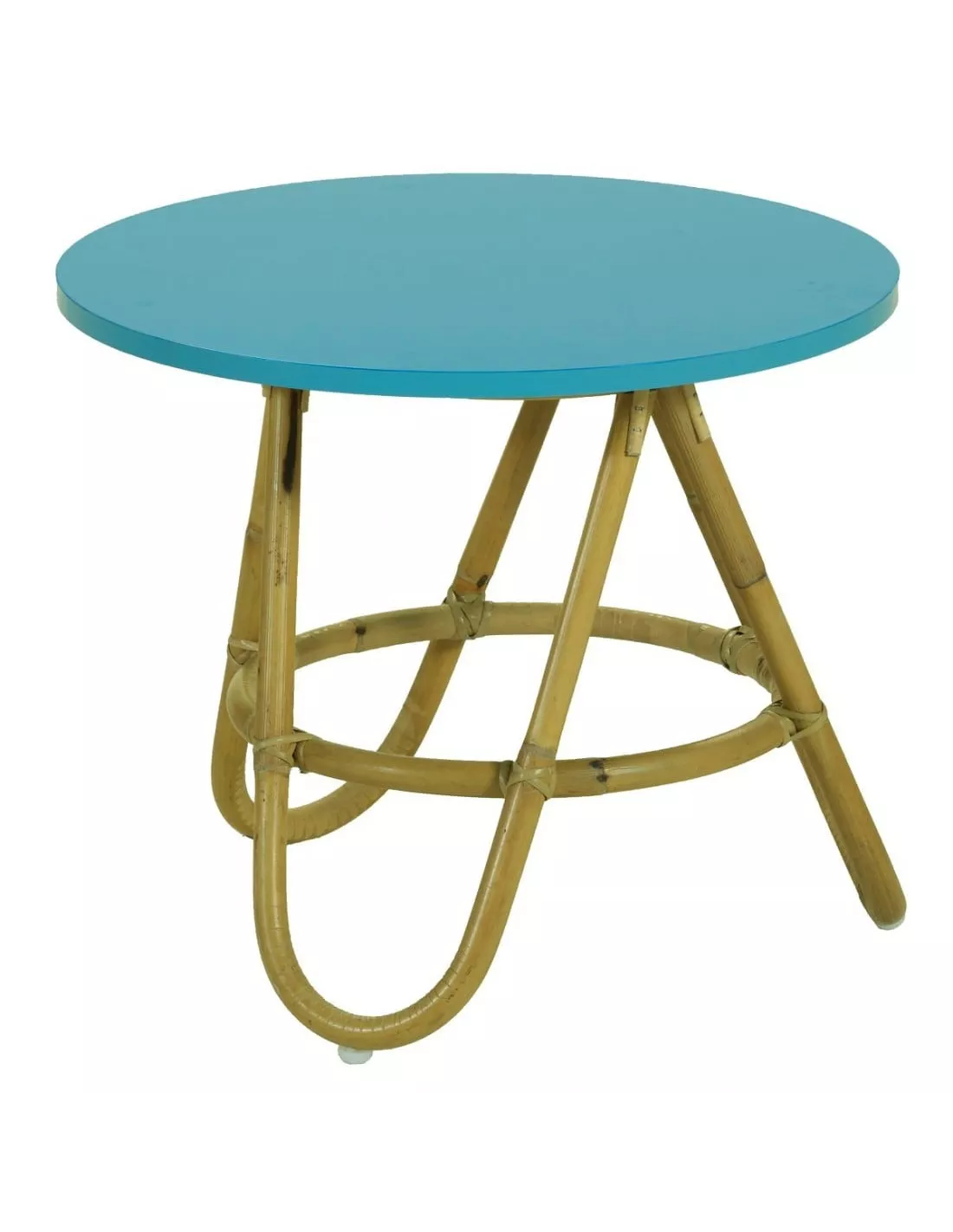 Table ronde en rotin Ø50 ou 60 cm au plateau laqué bleu azur, KOK Maison