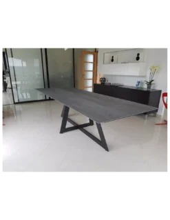 Cette table de salle à manger Céramique Carat rectangulaire nous séduit par son design. Son plateau est en céramique et son piètement en acier peint anthracite et vernis, conférant à cette table une grande élégance. Très tendance et naturelle, la céramique est 100% minérale et 100% recyclable. Ses performances sont exceptionnelles puisqu’elle est insensible aux tâches, ultra-résistante aux rayures et à la chaleur, et d’une hygiène irréprochable. La table en céramique est donc très pratique. Cette table de salle à manger en céramique sera un véritable accessoire de décoration d’intérieur pour une table de repas élégante et raffinée. La photo présente la céramique 75