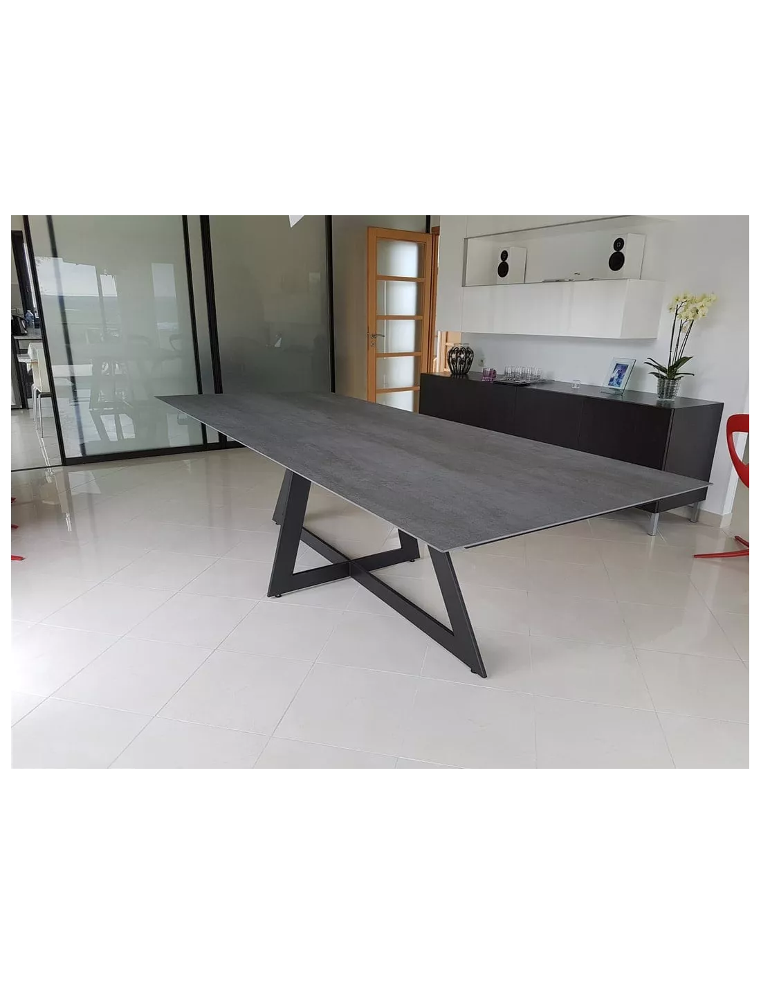 OPTION : Cette table de salle à manger en céramique vous est proposée avec des rallonges de 50 cm en option.