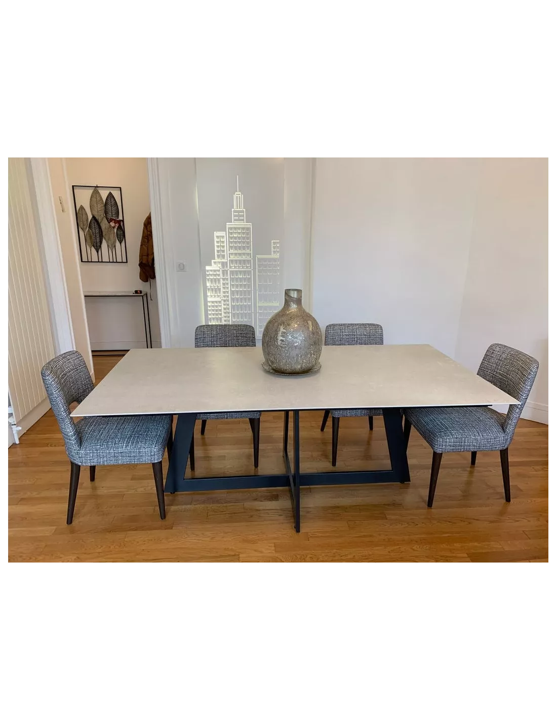 Cette table de salle à manger Céramique Carat rectangulaire nous séduit par son design. Son plateau est en céramique et son piètement en acier peint anthracite et vernis, conférant à cette table une grande élégance. Très tendance et naturelle, la céramique est 100% minérale et 100% recyclable. Ses performances sont exceptionnelles puisqu’elle est insensible aux tâches, ultra-résistante aux rayures et à la chaleur, et d’une hygiène irréprochable. La table en céramique est donc très pratique. Cette table de salle à manger en céramique sera un véritable accessoire de décoration d’intérieur pour une table de repas élégante et raffinée.