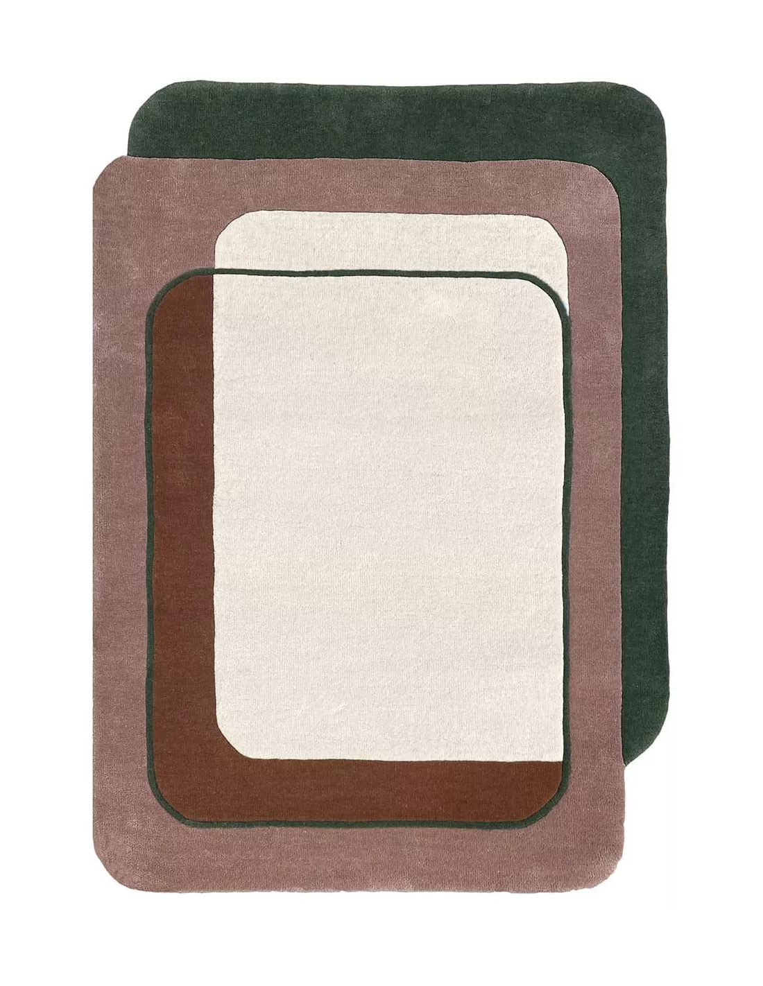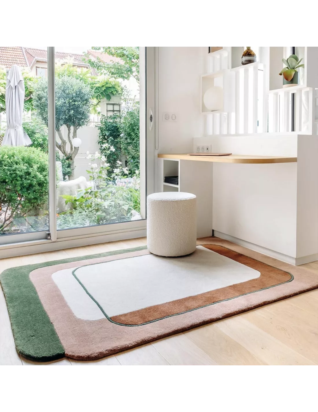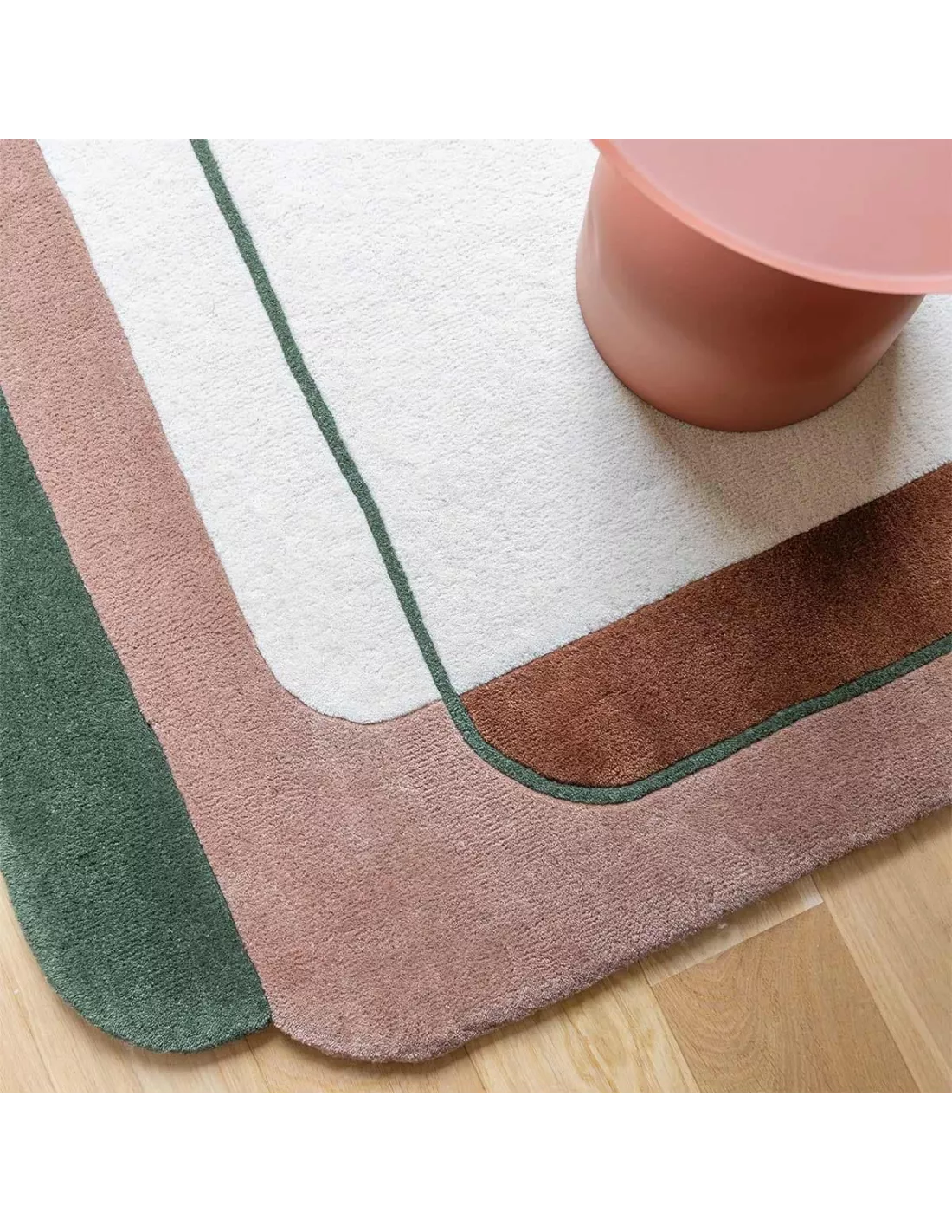 Tapis design blanc cassé, vert kaki, rose nude et terracotta, Edito