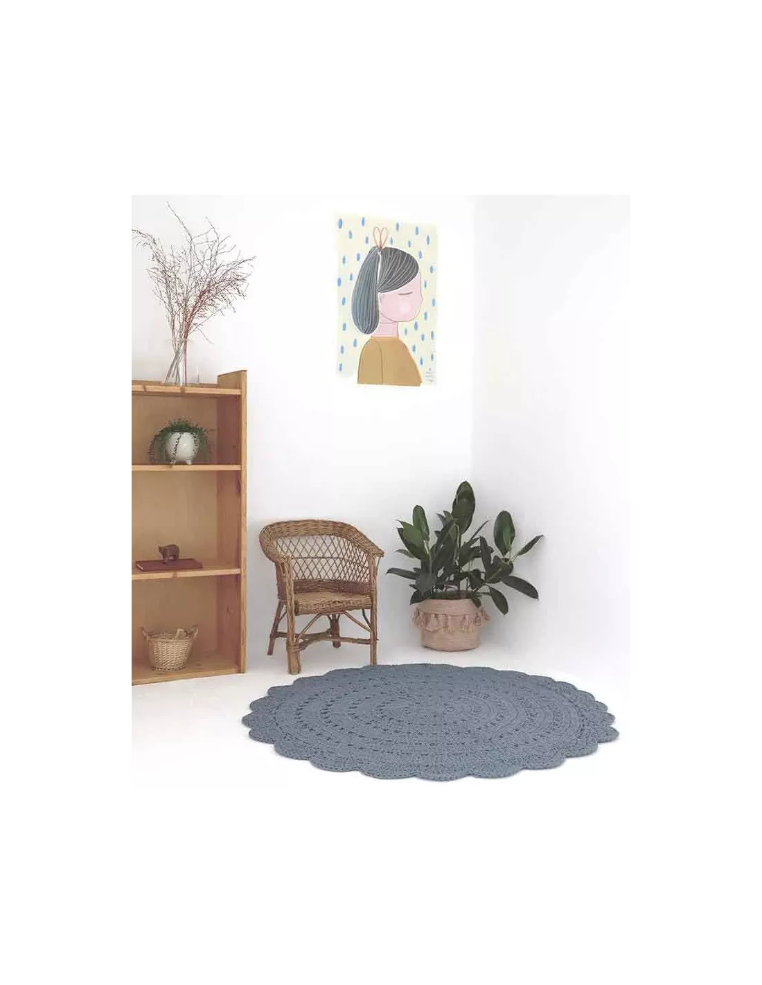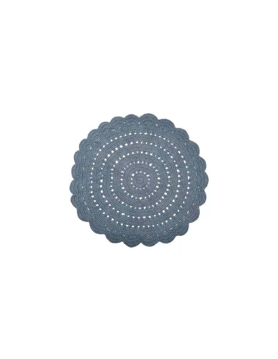 Tapis enfant rond bleu-gris en coton effet crocheté, Nattiot
