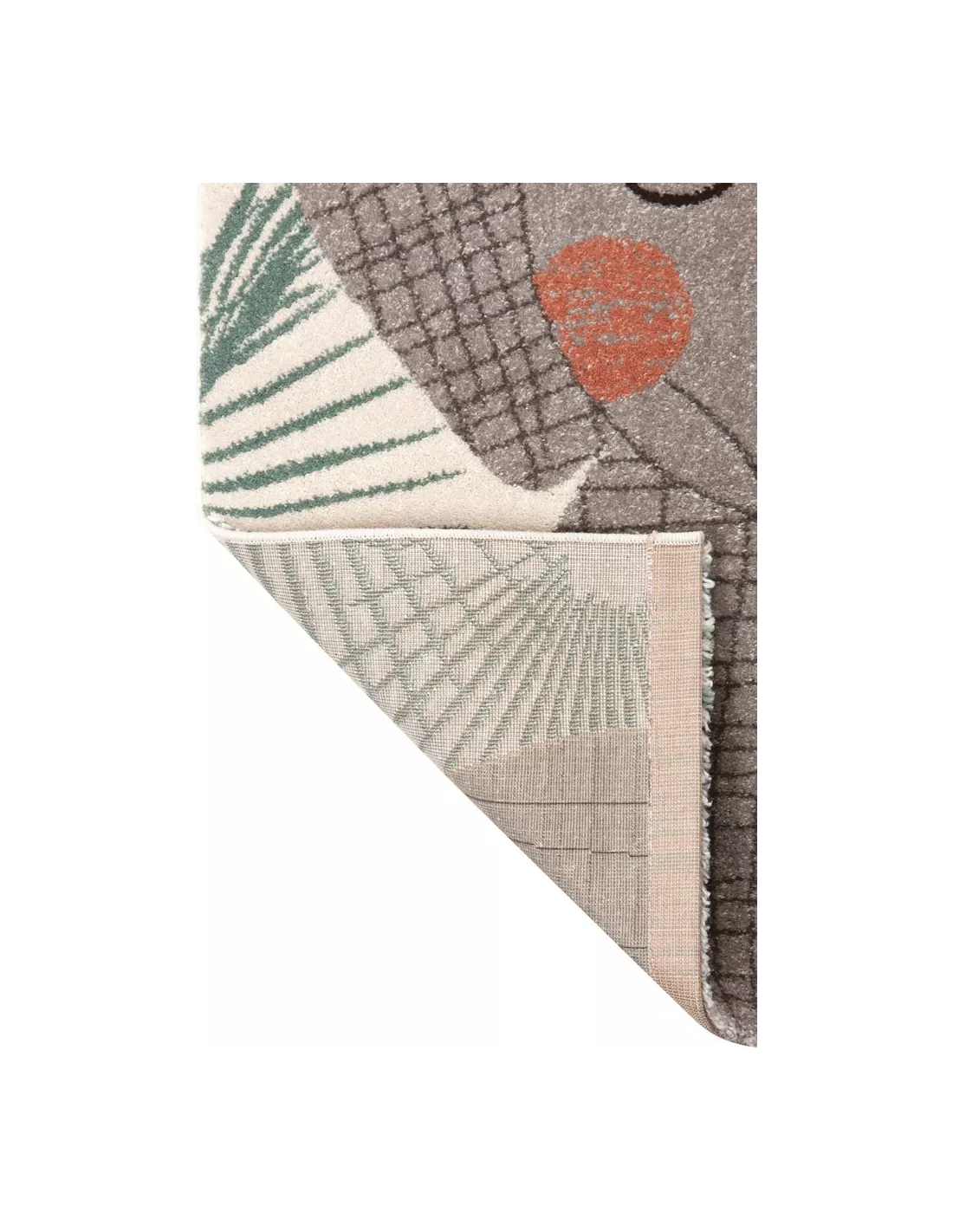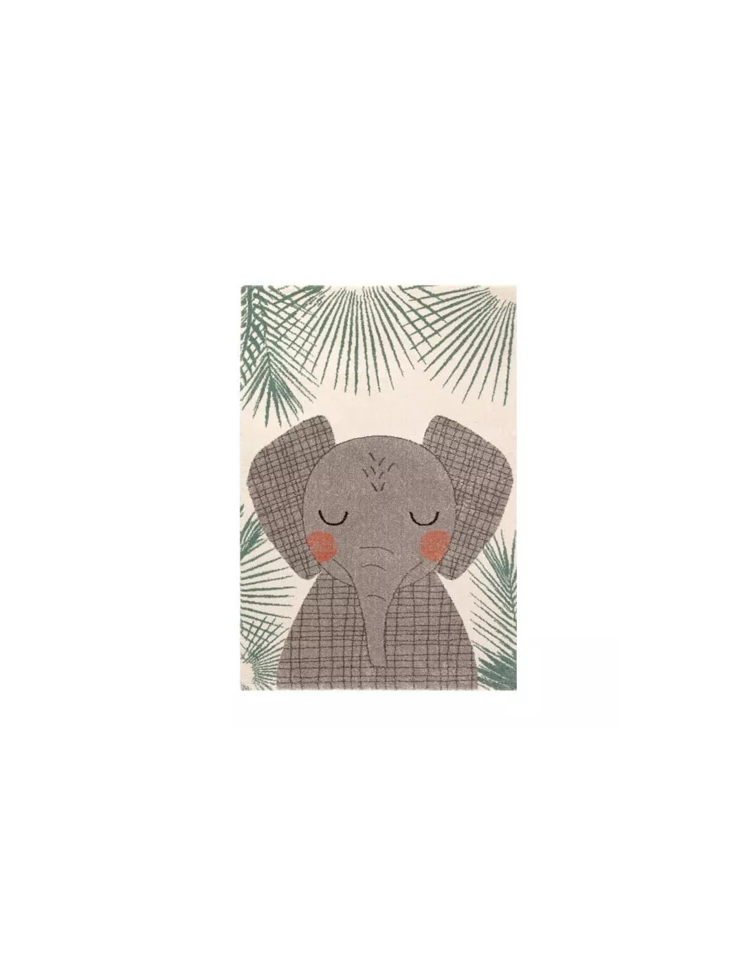 Tapis enfant motif éléphanteau vert écru et brun en polypropylene, Nattiot