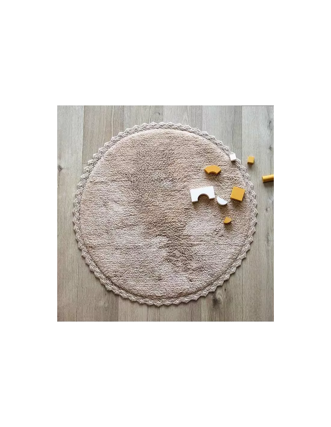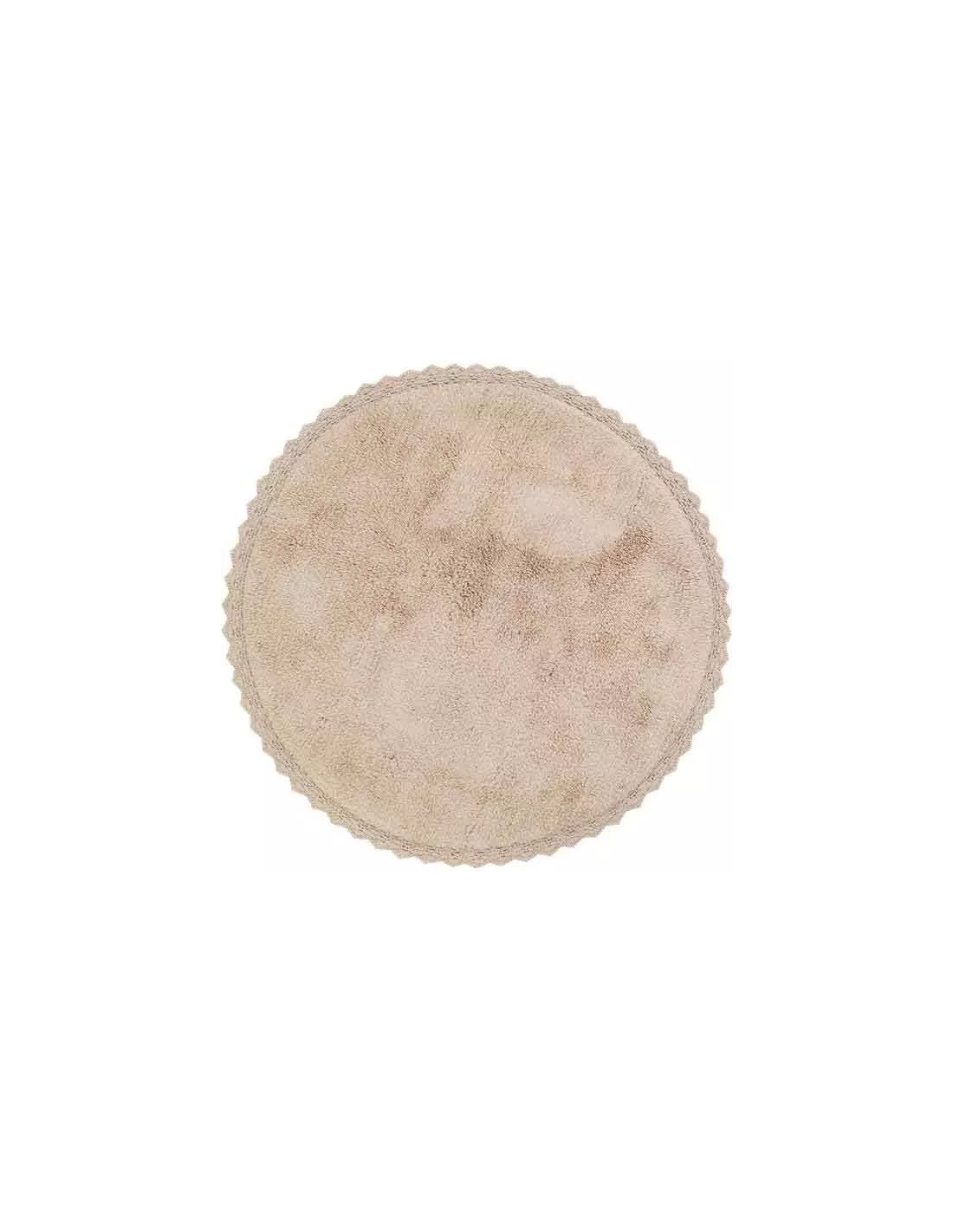 Tapis enfant rond uni beige en coton finition crochet, Nattiot