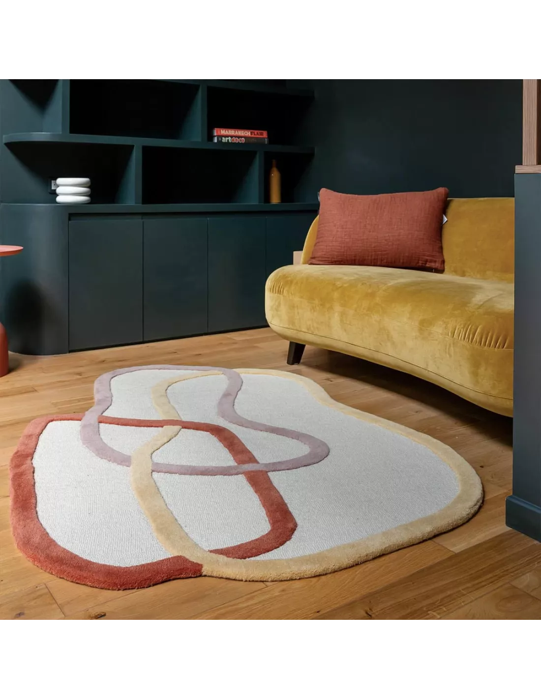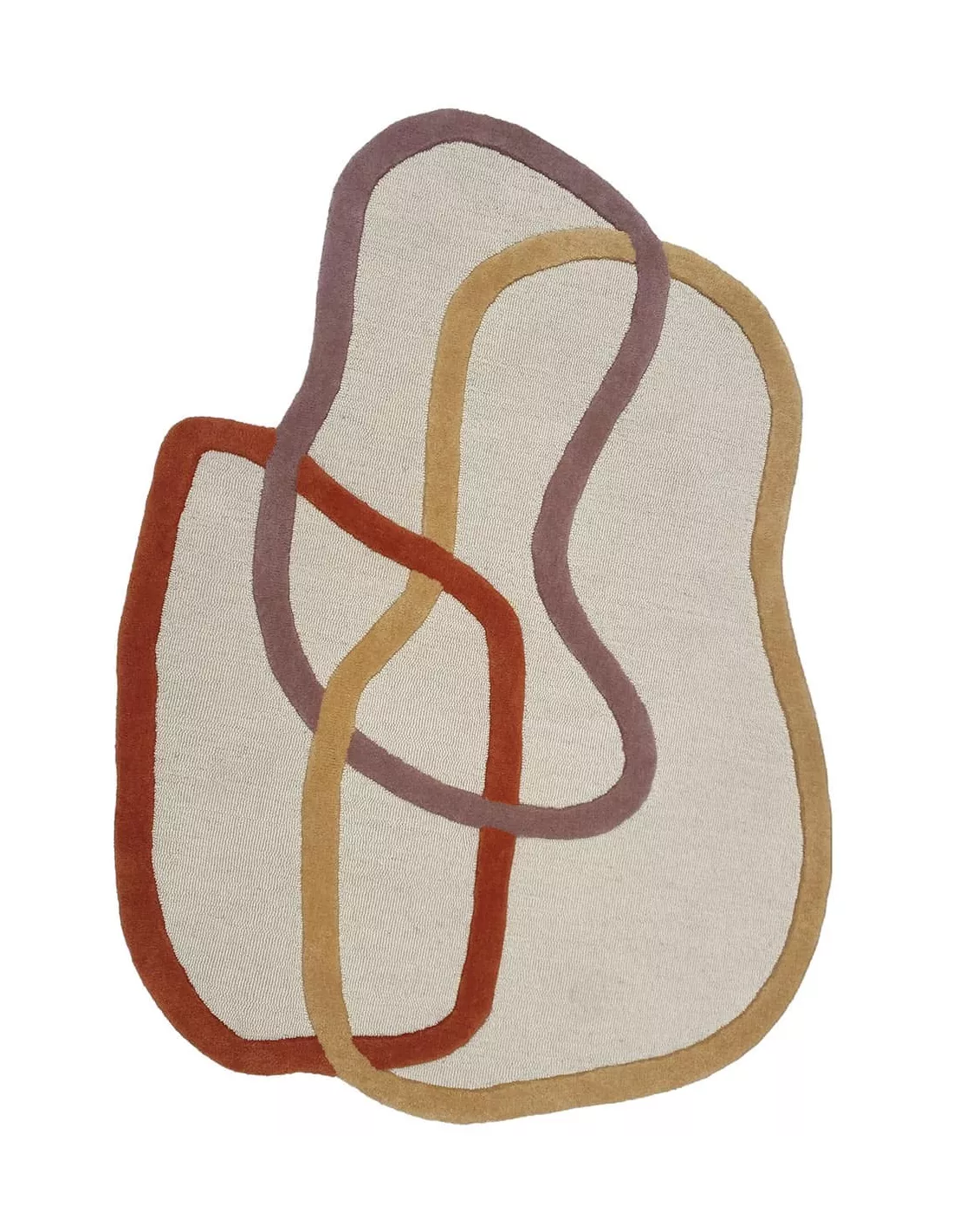 Fabriqué en laine de Nouvelle-Zélande tuftée à la main, le tapis Loop dévoile trois formes curvilignes s’entrelaçant avec une grâce artistique. Les contours en relief et les teintes variées ajoutent une dimension visuelle unique, où les couleurs scandinaves tranchent avec la neutralité de la surface. Le fond blanc cassé aux motifs jaune, orange, rose nude de ce tapis contemporain, offrent une composition contrastée qui égaiera votre intérieur.