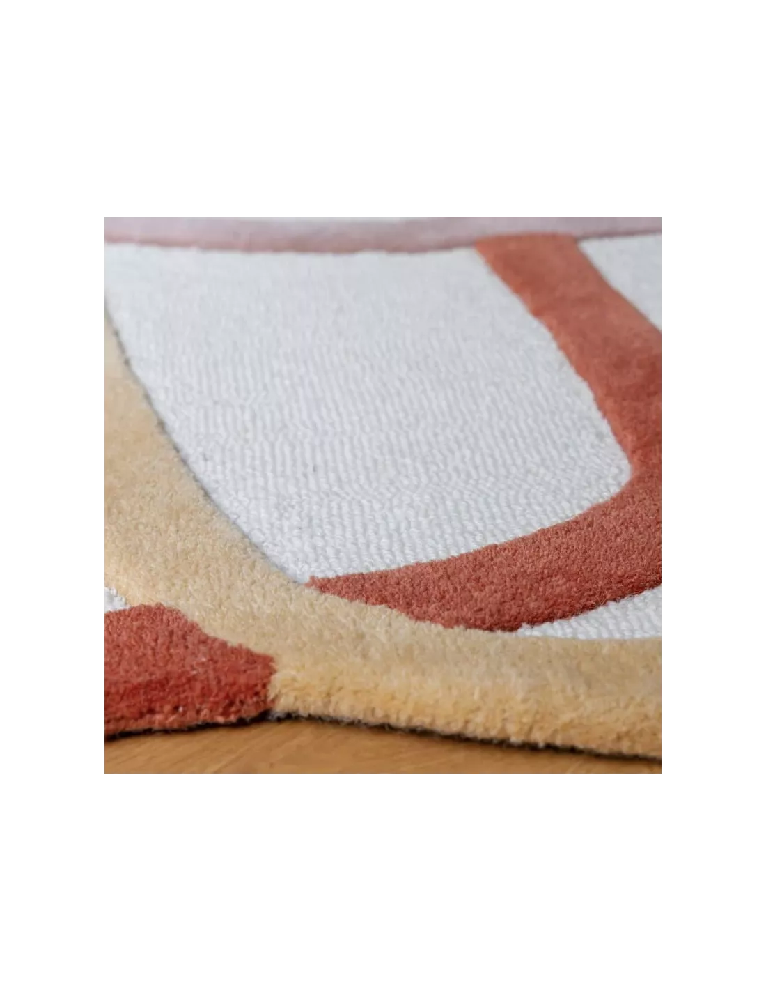 Tapis design fond blanc cassé aux motifs jaune, orange, rose nude, Edito