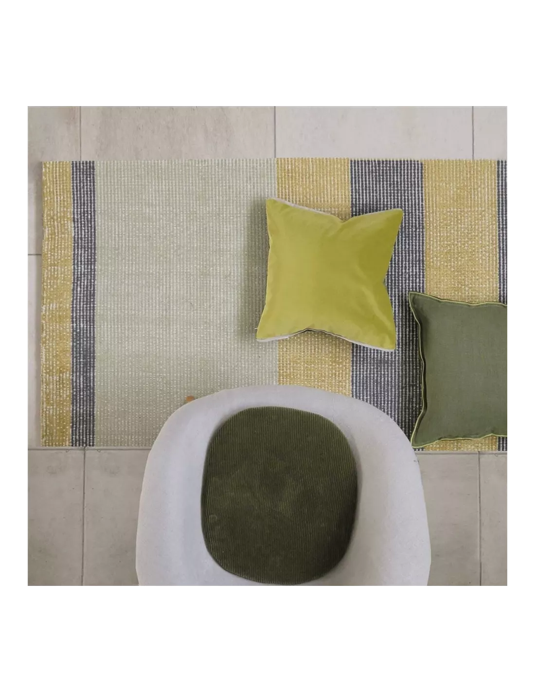 Tapis design à rayures jaune bleu et citron vert, Designers Guild