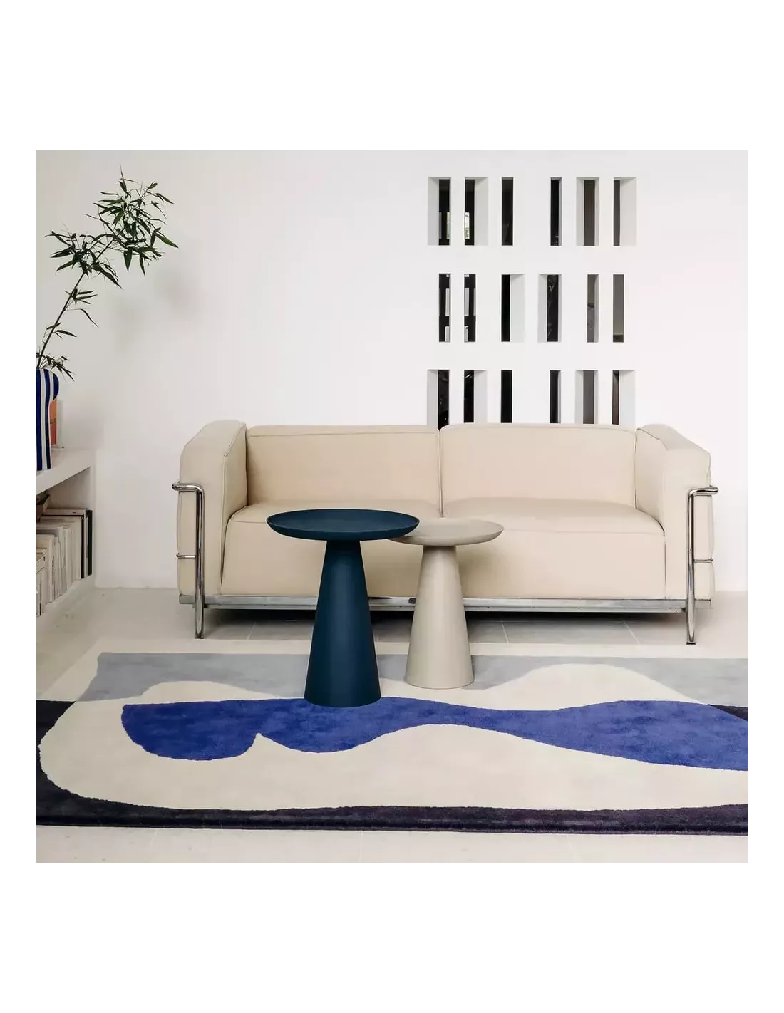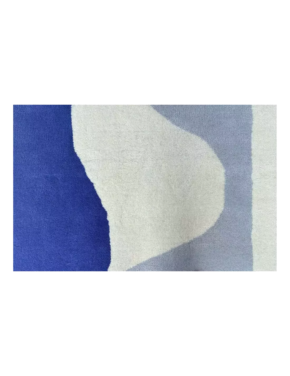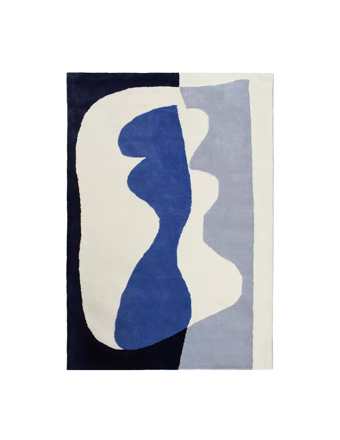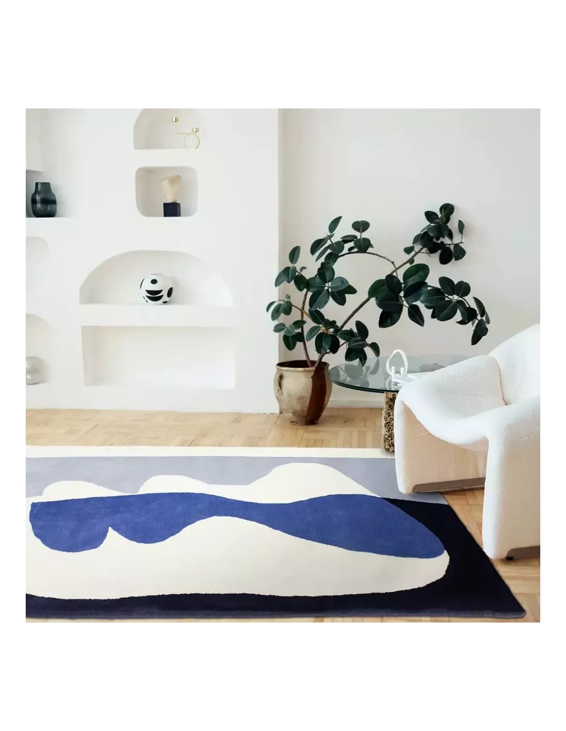 Tapis design fond blanc cassé aux motifs bleus, Edito