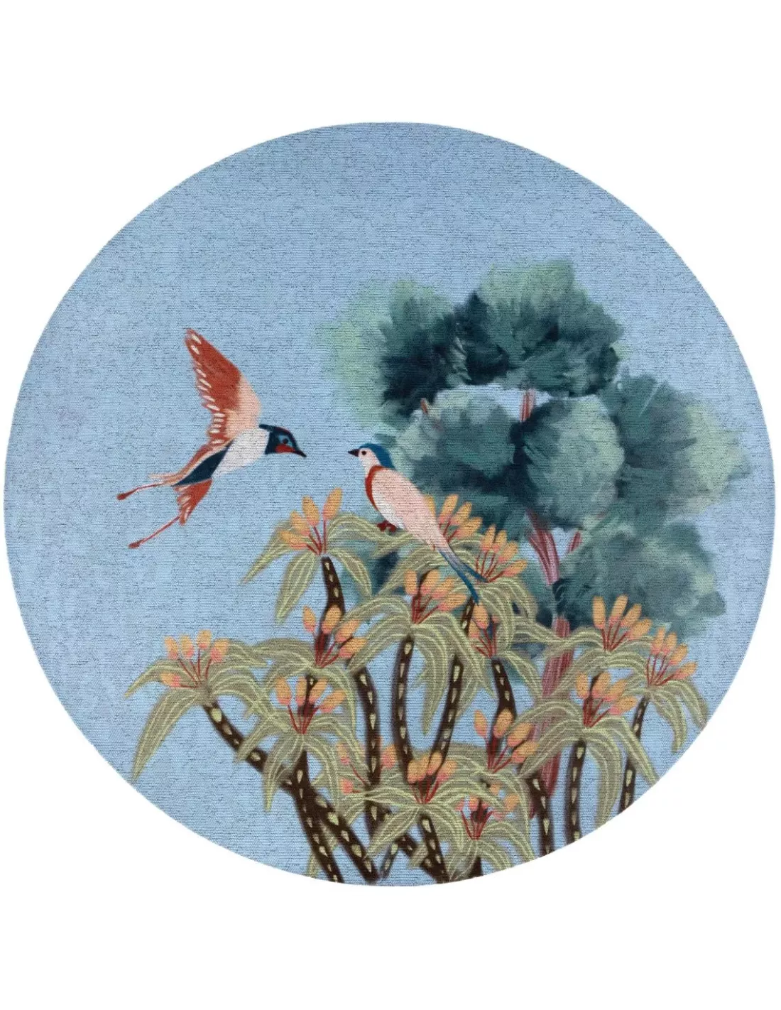 Laissez-vous envoûter par la grâce des oiseaux et la beauté de la nature avec le tapis rond Lola. Tissé en Europe avec un savoir-faire artisanal, ce tapis plat en polyester 100% allie durabilité et esthétique raffinée.
