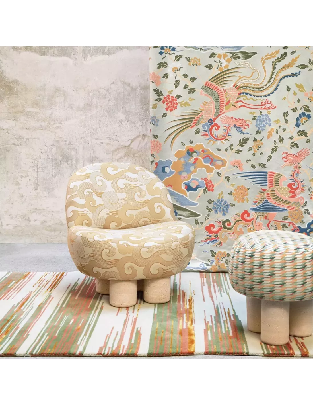 Tapis en laine motif Ikat, Lelievre